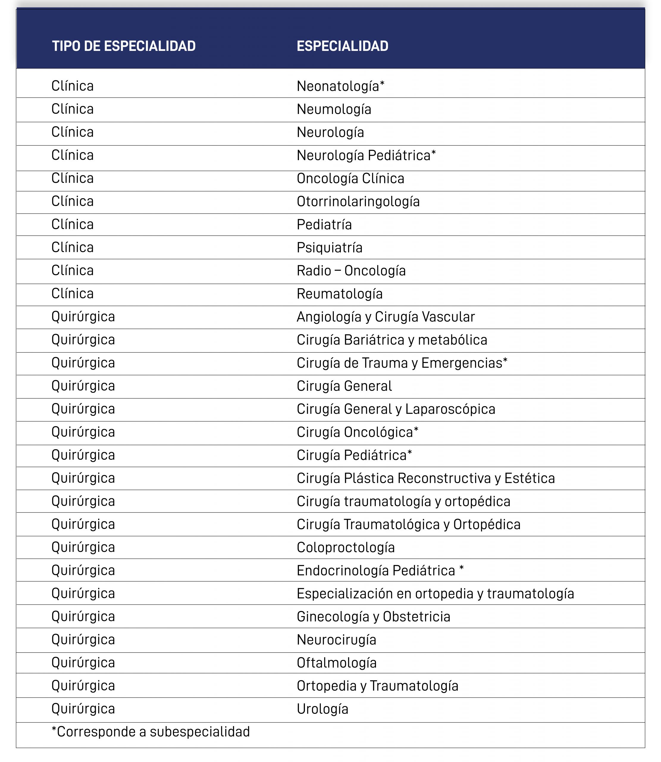 • Título de cuarto nivel (Especialización en el campo de la Salud / PhD): Campo de “Medicina” en especialidades médicas de tipo: Clínicas, Quirúrgicas y de Apoyo – Diagnóstico.